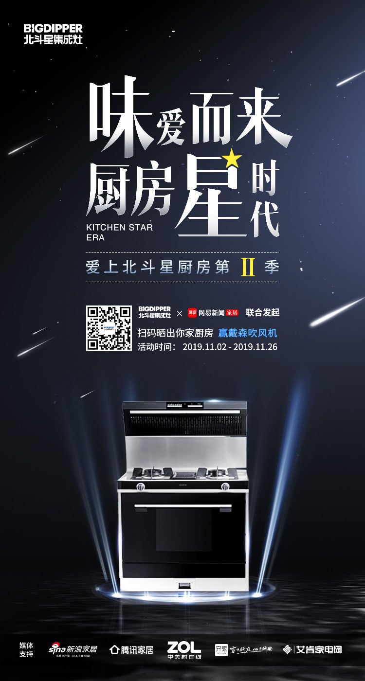 斗星集成灶聯合網易家居、新浪家居、騰訊家居、中關村在線、齊家網、艾肯家電發起“愛上北斗星廚房”第二季評選活動,期待每一位熱愛生活的你,曬出你家的最美開放式廚房,和我們一起分享你的美好與愛~