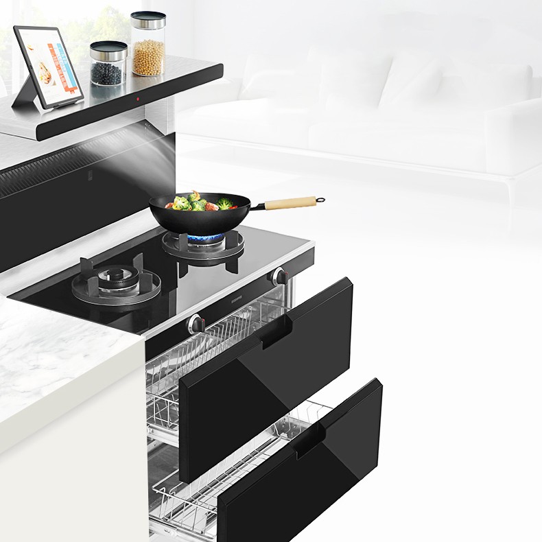 北斗星A1集吸油煙機、燃氣灶、消毒柜等多種電器于一體,省去了上方傳統(tǒng)壁掛式吸油煙機的空間(可加裝一排櫥柜),為廚房提供了更多的使用空間,能夠很好得解決廚房電器的擁擠問題。對于想要一起下廚的一家人來說,不再煩惱空間擁擠,可以享受烹飪的溫馨時光。同時北斗星A1集成灶擁有超大置物臺可放置調(diào)料罐,干凈整齊又美觀。