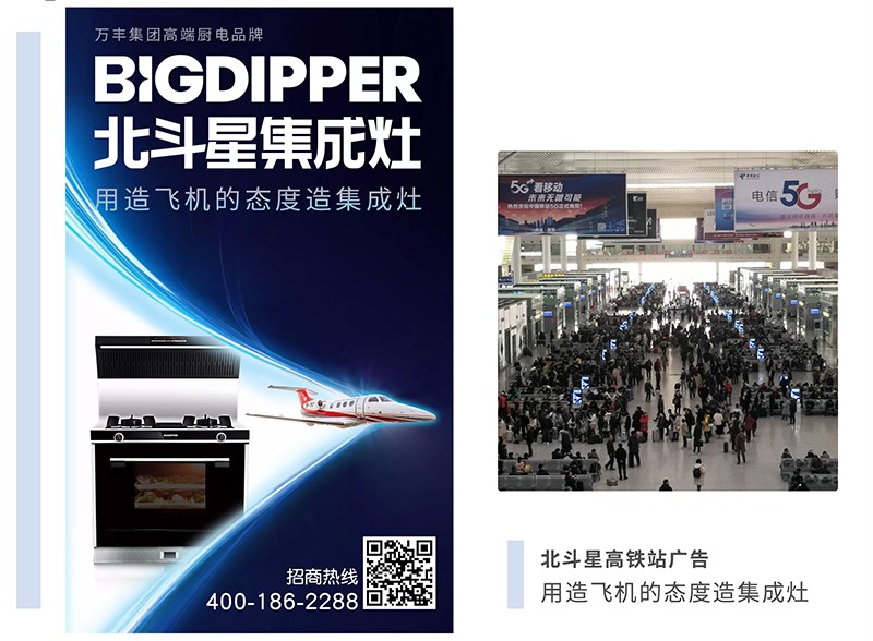 在品牌林立的高鐵站,每天數(shù)以千萬級的高端客流量,無論在候車大廳、檢票口等黃金高客流量區(qū)域,都能發(fā)現(xiàn)北斗星集成灶的廣告。這必將大幅提升北斗星品牌的曝光度與知名度,同時也進一步將“用造飛機的態(tài)度造集成灶”的品牌精工理念傳遞給更多的消費者!