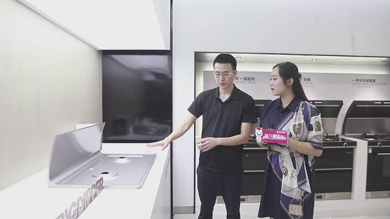 接著,在主播帶隊來到北斗星公司展廳,北斗星研究院張程祥院長為大家講解了北斗星家族產品標志性的創新特性——“天一無縫,就是好擦”的一體式無縫臺面,擦洗無死角,就是好清理!現場還演示了爆炒辣椒,油煙一秒吸凈,近距離也不嗆,更為直觀地向大家展示北斗星集成灶的完美使用性能。