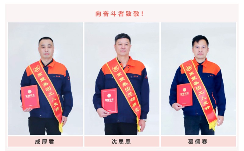 總有這么一群人,以己之力與時間賽跑,與品質并行,用“奔跑”的成果來標注一個品牌的成長速度。在晚會中,北斗星制造副總經理沈思恩先生被授予“萬豐集團勞動楷模”殊榮稱號,營銷中心成厚軍和制造部葛儒春分別被授予“萬豐集團工人先鋒”稱號,鼓勵他們再接再厲,共創輝煌。