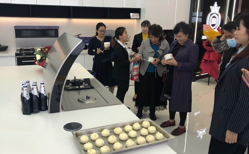 開業(yè)期間,現(xiàn)場(chǎng)擠滿了前來(lái)參觀的客戶,人頭攢動(dòng),熱鬧非凡!足見北斗星重慶南坪新店開業(yè)的火爆程度。活動(dòng)現(xiàn)場(chǎng),客戶紛紛前來(lái)體驗(yàn)咨詢,工作人員演示了機(jī)王A6蒸箱操作,用嫻熟的技藝為大家制作了包子。隨著美食從蒸箱一一出爐,原汁原味的食物口感,贏得到了客戶們的青睞和好評(píng)。加之,北斗星集成灶有著強(qiáng)效快速吸油煙魔力,"天一無(wú)縫"專利臺(tái)面,讓機(jī)王A6成為現(xiàn)場(chǎng)的品牌明星!