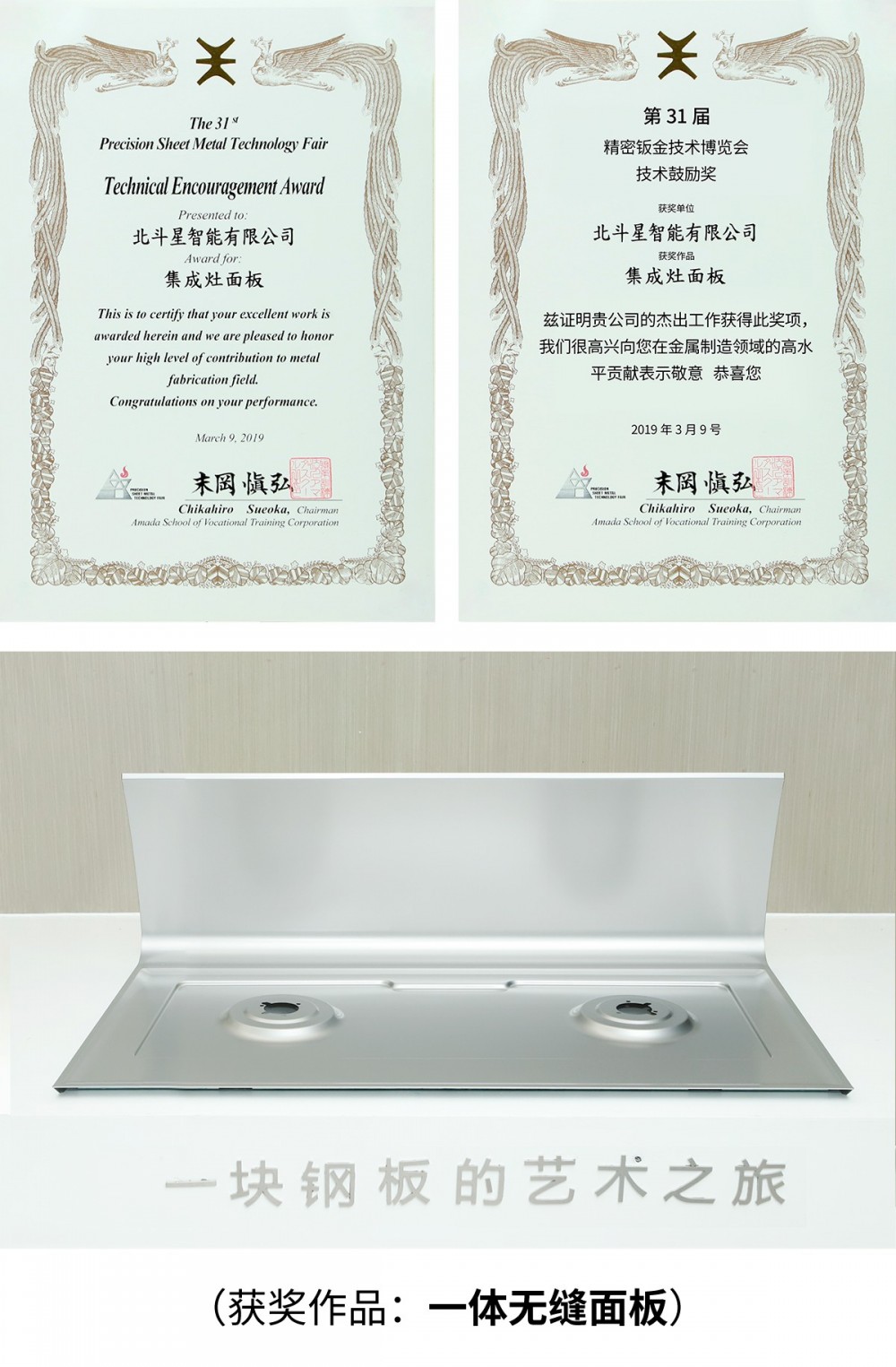 近日,歷經嚴格審核,北斗星集成灶精工鈑金制品“盾形全負壓風箱”順利通過第33屆國際精密鈑金技術博覽會專業評審,繼2019年北斗星首創天一無縫專利“一體無縫面板”之后,再次獲得“優秀鈑金技術獎”,成為行業內唯一獲此殊榮的企業。