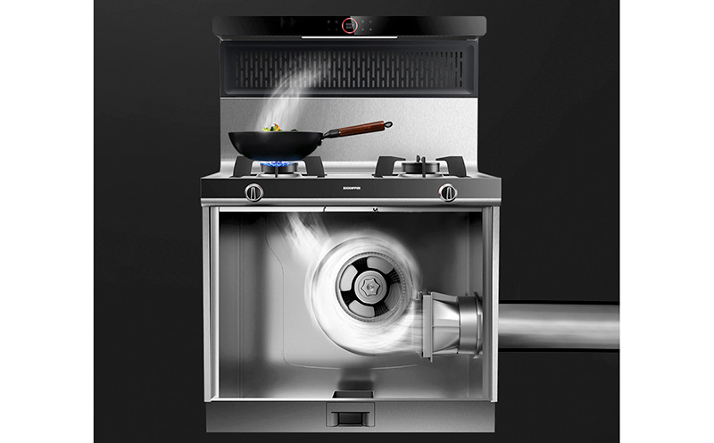 北斗星集成灶A5采用首創油煙鯨吸式凈吸系統,“天穹”攏煙+鯨吸式風道+盾形全風壓風箱,500Pa超大靜壓,排風量高達20m³/min;再加上吸風口距離鍋中心僅20cm,達到一個強勁的吸油煙效果,油煙還沒來得及擴散,就被煙機吸走,完美解決油煙問題。