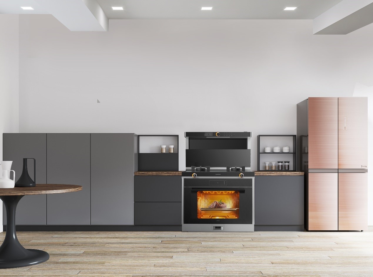 集成灶是個多功能結合的廚具,有油煙機,烤箱,儲藏柜,蒸箱,燃氣灶等等,比起老式三件套,特別節省廚房空間