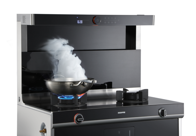 第二,集成灶近吸油煙不過臉。傳統(tǒng)油煙機(jī)吸油煙會過臉,而集成灶的吸煙口距離鍋口很近,油煙不過臉就被吸走。高端集成灶還有鯨魚仿生吸煙口,吸油煙快,不會跑煙,保護(hù)住了我們的皮膚和呼吸道健康,對開放式廚房來說是不錯(cuò)的選擇。而且煙機(jī)與灶臺、是聯(lián)動的,做飯時(shí)很方便。