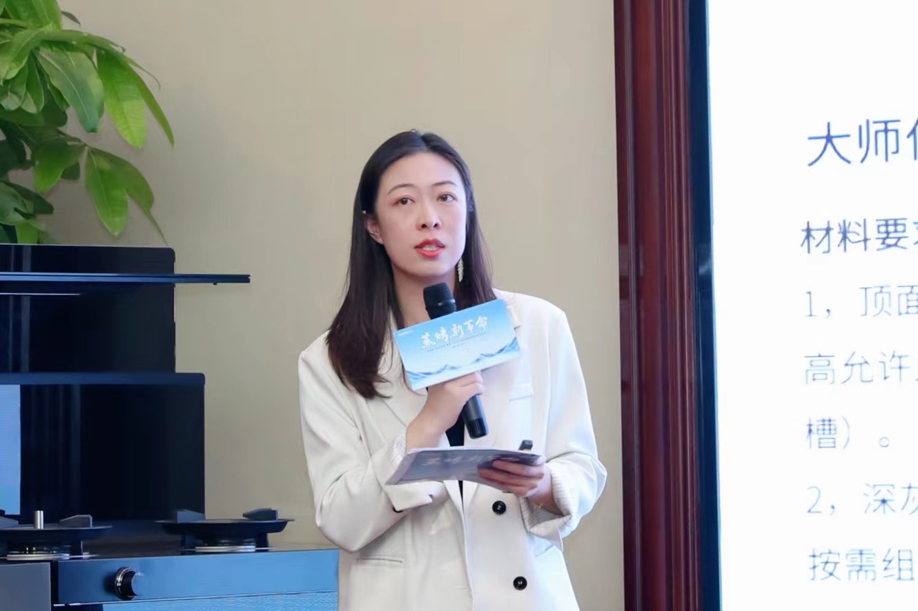 新品發布會上,北斗星市場運營總監胡文貞,重磅揭曉北斗星新蒸烤集成灶。