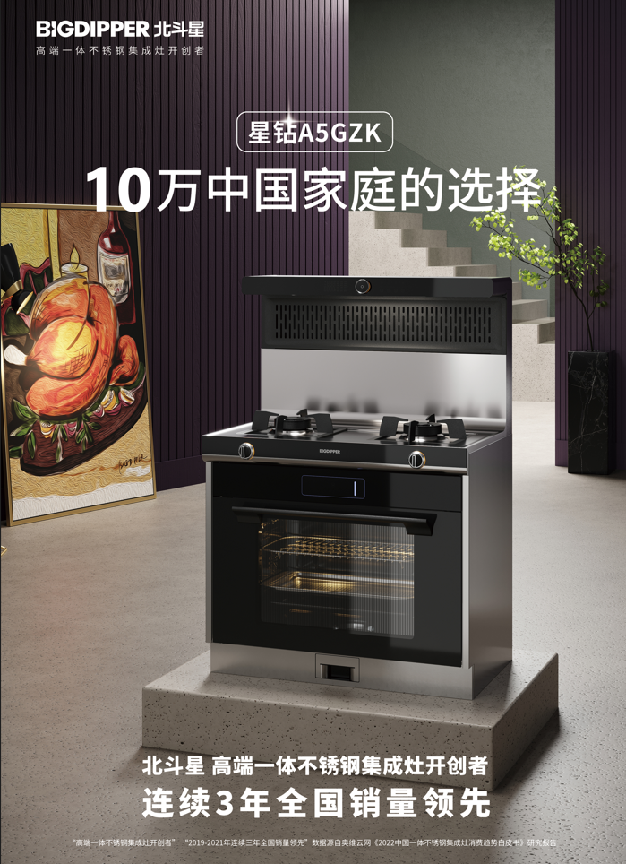 本次角逐2023年度廚衛產業“高端產品獎”是北斗星A5蒸烤一體集成灶。憑借其一體無縫不銹鋼臺面、“大師級真蒸烤”強大的功能以及貼近消費者體驗的人性化設計等核心優勢,獲此殊榮。